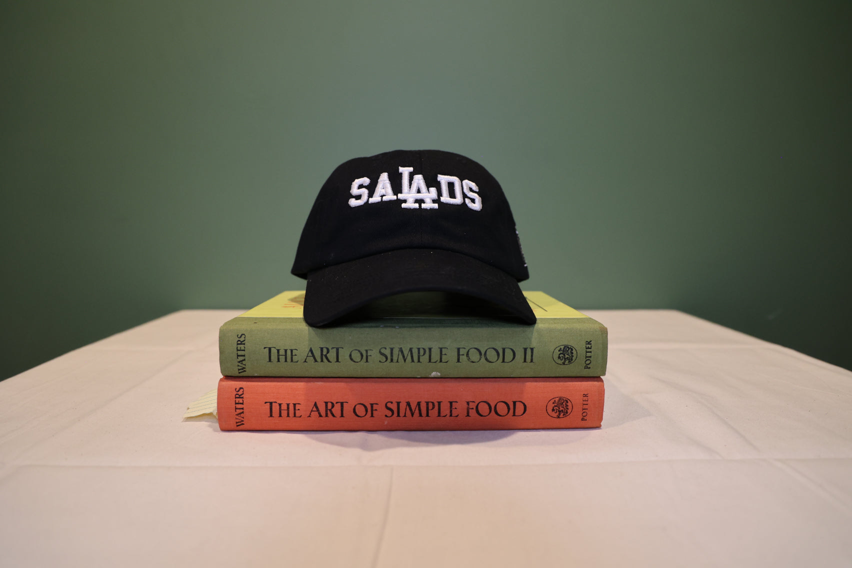 Keep your look cool and laid-back with this adjustable saLAds baseball hat, perfect for sunny days at the farmers market.